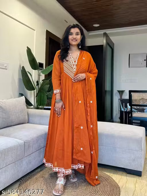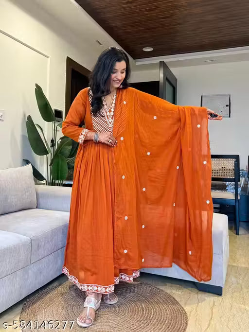 Dupatta: Comes with a matching dupatta featuring heavy embroidery and handwork detailing for a rich festive appeal.